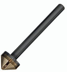 This CRL Diamond Countersink features a medium grit diamond for grinding precise, chip-free, 90 degree tapers into existing holes in glass. Versatile because it can be used on any hole size up to the maximum countersink diameter. Run at medium speeds, the countersink must be applied to the glass so it touches the circumference evenly. It can also be used on marble and granite. Countersinks are available in different angles and diameters by special request.