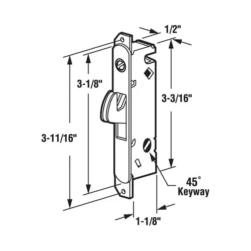This CRL Mortise Lock has a 1/2" wide steel housing. The hook projection is adjustable and the keyway is in a 45 degree position with the hook fully extended. The lock has a round end face plate. This unit fits on doors manufactured by W & F. One lock with installation fasteners per package.