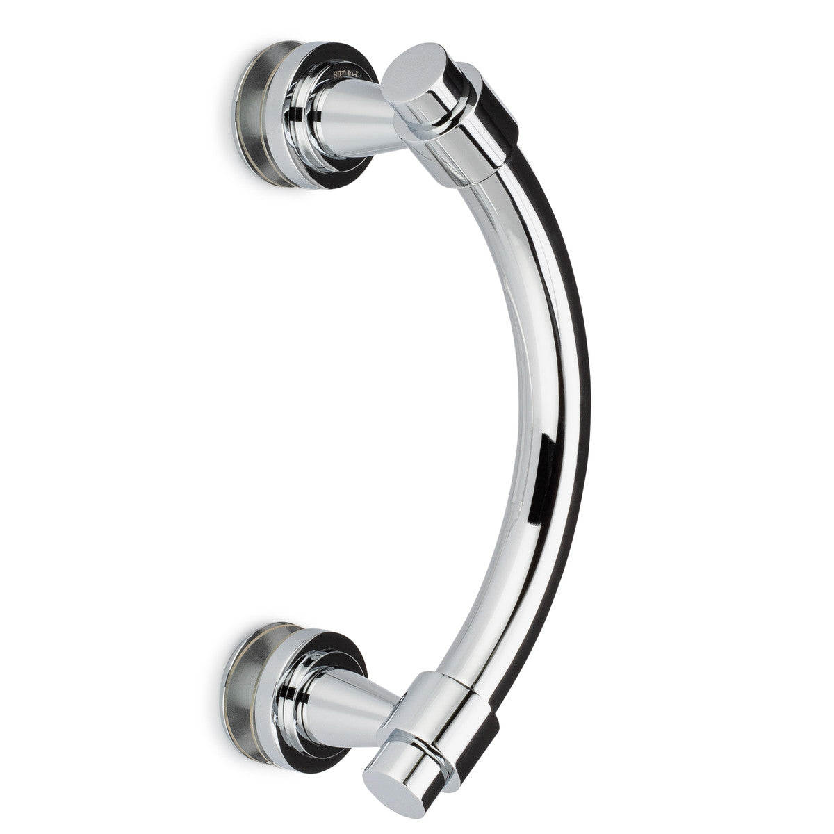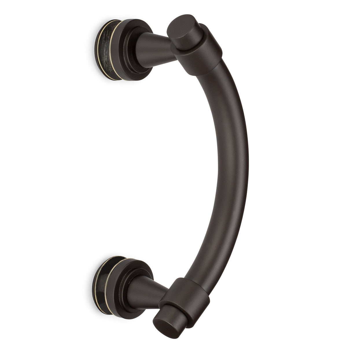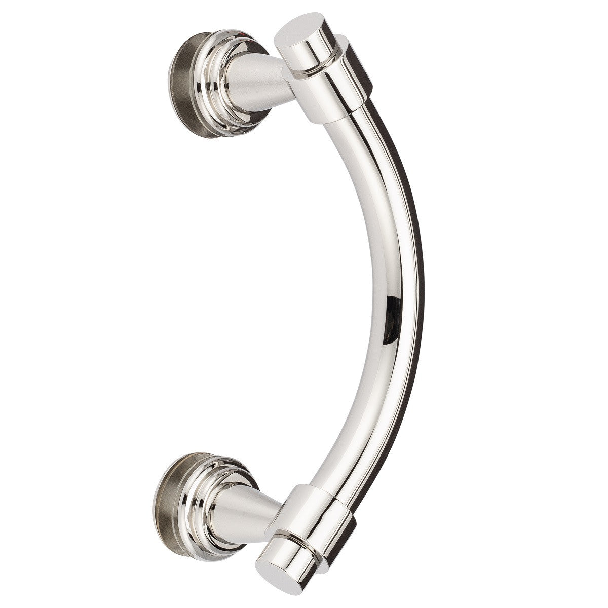 Engineered to provide a lifetime of trouble-free service on 1/4" to 1/2" glass doors | Product design coordinates with other shower and bathroom hardware in the Concerto suite | Decorative rosettes provide additional design detail and cover any glass defects around the holes | Backplates for dingle-sided pulls are designed to allow clearance for bypass doors.
