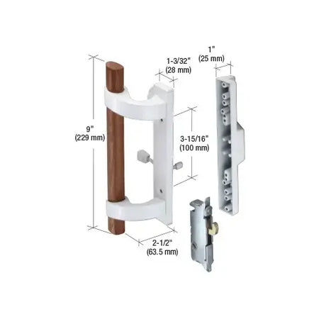 C.R. LAURENCE C1219 CRL White Sliding Glass Door Handle with Mortise Lock. This popular Sliding Glass Door Handle has a white powder-coated finish. The mounting hole centers are 3-15/16" (100 mm). The outside pull is a raised die cast body which can be modified to accept an optional key cylinder. This handle comes complete with an E2014 mortise latch. Mounting fasteners are included.. Part Numbers Variations: C1219