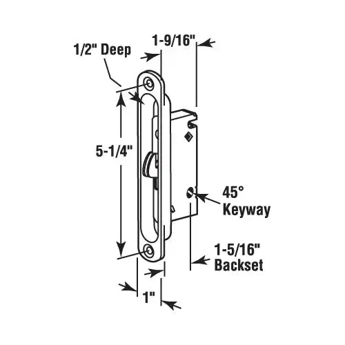 CRL 1" Wide Mortise Lock and Plate with 45 Degree Keyway - E2189