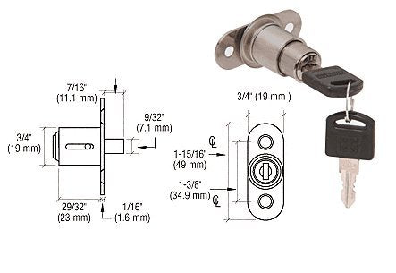 CRL Track Plunger Locks install easily on sliding glass doors in showcase track assemblies. They can be mounted in the H-Bar or within the surround frame of the glass doors. The spring-activated design permits keyless locking by simply pushing the plunger. Lock comes complete with two brass keys and trim washer. Customers needing duplicate keys can order Cat No. LKEY which is the blank key for this Lock. If these Locks are being used with D610, D5610 or MC610 H-Bar, the glass will require notching. If being used with LK610 H-Bar and D602 Lower Track, no glass notching is required.