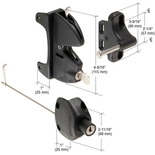 This CRL Lokk-Latch® has an external push button that allows the gate to be opened and locked from either side at the same time. Adapting the Latch to fit left-hand or right-hand hinged gates is now easier. Instead of the previous six-screw backing plate, the new adaptor plates have a "snap-on" design that’s retained using just one screw. This Lokk-Latch® includes hardware to attach to fence posts. (Ideal gap 3/4")