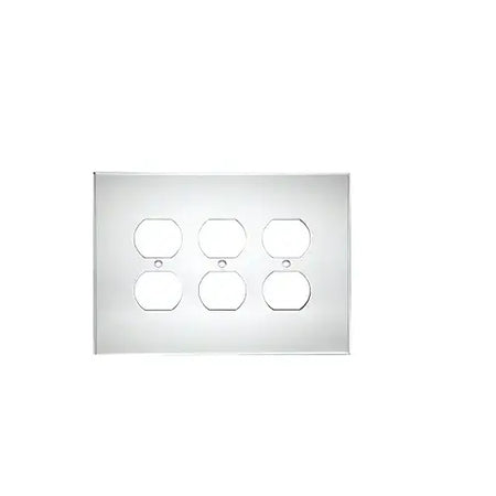 C.R. LAURENCE PMP303 CRL Clear Triple Duplex Acrylic Mirror Plate. CRL Acrylic Mirror Switch and Outlet Cover Plates are made of high quality, 1/8" (3 mm) mirror-backed acrylic with high polished edges. Each plate is drilled for standard mounting screws (included), and are packed and shipped with peel-off scratch resistant film. There are 36 stock styles, all available in both clear and bronze mirror. CRL Acrylic Mirror Switch and Outlet Cover Plates are versatile, economical, and attractive. Flame retardant backing meets Canadian Standards Association safety performance standard.
