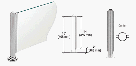 C.R. LAURENCE PP02CBS CRL Brushed Stainless 16" Round PP02 Elegant Series Counter/Partition Center Post With Air Space. By stocking large quantities of different Partition Post components, and matching them with pre-cut and fabricated tubing and channels, we can offer Custom "Quick Ship" Partition Posts in three to five working days shipping from our Los Angeles, California warehouse. Our manufacturing facility is equipped with plenty of machinery, assembly fixtures, and craftspeople with the technical expertise to quickly fill your requirements.