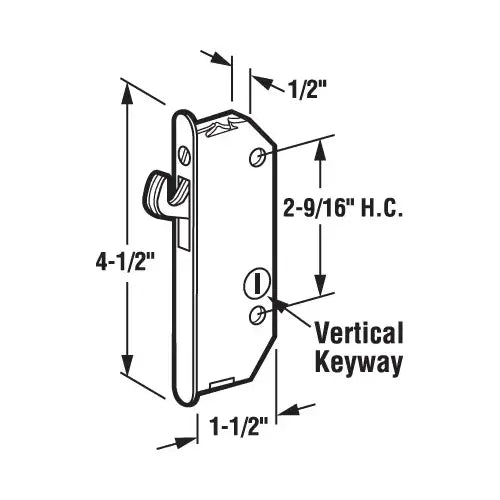 CRL 1/2" Wide Mortise Lock With 2-9/16" Screw Holes With Vertical Keyway - E2171