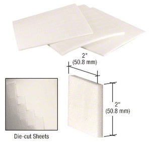 These CRL Super Duty Shipping Pads are used by aluminum window and door fabricators to support and separate finished units during transport and storage. The highly condensed white trocellen foam compresses slightly under load, and has great capacity to handle shock and heavy loads. The adhesive coating sticks tight in all climates, yet leaves no residue or discoloration of metal surfaces when removed, even after months of storage. Pads Per Sheet: 36 Sheets Per Box: 84 Total Pads Per Box: 3024 Minimum Order: 1 Box Additional Product Information: CRL Super Duty Shipping Pads are die-cut on sheets of release paper, and peel off easily for application, even in high production situations. Standard thicknesses are 1/4 and 1/2 inches (6.3 and 12.7 mm), and all sizes are packed in boxes that will ship U.P.S.