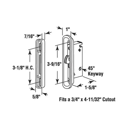 CRL 7/8" Wide Mortise Lock and Keeper With 3-1/2" Screw Holes With 45 Degree Keyway - E2487