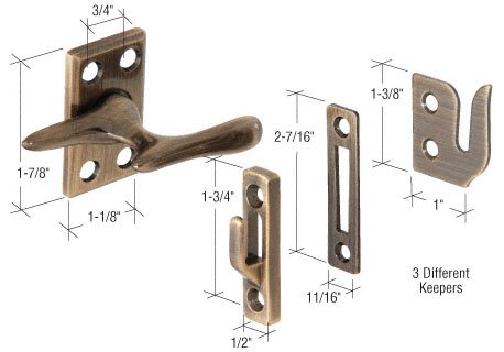 This CRL Casement Sash Lock is for old style wood casement windows. The lock comes with three different keepers for special mounting applications. Each package comes with one lock, three keepers and installation screws.