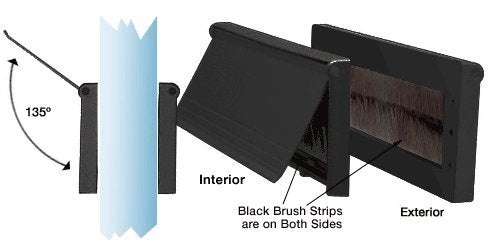 CRL No-Draft Mail Slots are designed to keep out the weather as well as dust and dirt. The CRL No-Draft Mail Slot has two door flaps, both spring-loaded and weather-stripped, as well as an internal brush strip for greater insulation and privacy. Both the external and internal flaps open to 135 degrees for easy access. Both have durable nylon torsion rods instead of springs to keep both flaps tightly shut. Made from high impact ABS plastic and anodized aluminum, CRL No-Draft Mail Slots will not rust or tarnish over time. Easy-to-install by simply running a bead of CRL Cat. No. RTV408C Clear Silicone on both the interior and exterior sleeves and attaching each side to the glass around the 10-1/4" (260 mm) wide x 1-7/8" (48 mm) high cut-out. Intended for horizontal orientation where glass surrounds slots on all four sides.