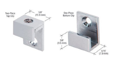 CRL 5/8" (15.9 mm) Wide Mirror Clips are designed for 1/4" (6 mm) mirror. They simplify the process of installing mirrors by using the One-Piece Clip on the bottom and the Two-Piece Clip on top for a quick and easy installation. The Upper Clip is removable by unscrewing the top screw. Supplied with #6 x 3/4" (19 mm) Flat Head Wood Screws and Plastic Anchors. Set includes two Upper and two Lower Clips.