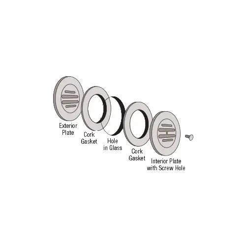 Our CRL No-Draft Speak-Thrus are designed to allow audible transmission of voice requests at ticket windows, box offices, and more. They prevent tampering from the outside, and stop drafts to the interior. The 549 Series is made of brass, the 834 Series is made of aluminum. Each unit is individually boxed with gaskets and mounting screws for installation on glass from 1/4" (6 mm) to 1/2" (12 mm) thick. For glass up to 3-3/4" (95 mm) thick you can use the optional Cat. No. 8324 4" (102 mm) screws. No-Draft Speak-Thrus require a minimum hole diameter of 2-1/4" (57 mm), and will cover holes up to 4-1/4" (108 mm). Recommended hole diameter is 3-1/2" (89 mm).