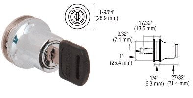 CRL Chrome Plated Lock for Cabinet Glass Doors - Keyed Alike - LK50KA