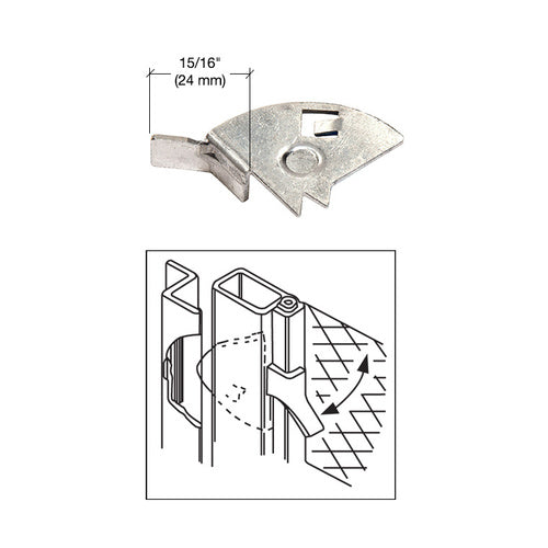 The CRL Inside Blade Knife Latches securely hold screen frames in window frames. The process involves notching the screen and window frames with a WST901 Notching Tool, followed by the insertion of the Knife Latch into the screen frame. Each WSC530 includes 50 right-hand and 50 left-hand latches. Additionally, for smaller projects, the latches are offered in cards containing 3 pairs.