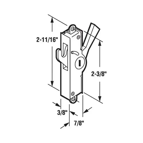 This CRL Internal Lock is used for surface mounted patio door handles. It has a 3/8 inch (9.5 millimeter) wide steel housing and a steel hook with a black plastic lever latch. This unit fits on Adams Rite. One lock with installation fasteners per package.