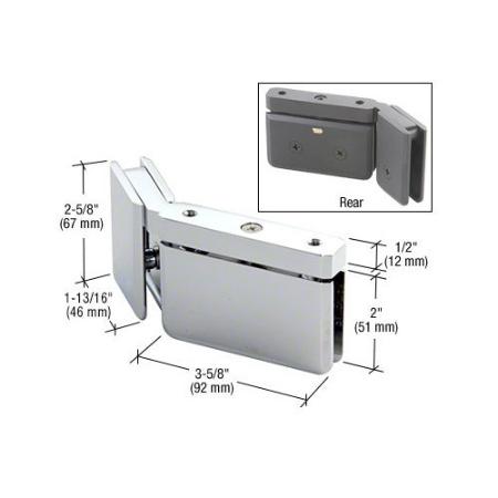 The combination of the Prima Hinge with a U-Clamp at the top of the enclosure enables the installer to securely mount a shower door next to an adjacent 135-degree fixed panel without the need for a header. This can also be achieved at the bottom of the door, or by using a standard PPH01 Model with a separate U-Clamp or U-Channel at the bottom of the panel. The hinge is available in six popular finishes and is specifically engineered for use with 3/8" or 5/16" (10 or 8 mm) thick tempered safety glass.