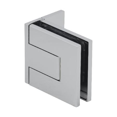 The sleek Palermo Series Hinge, a unique hinge designed for 3/8" to 1/2" (10 mm to 12 mm) glass. The precision lines contribute to its distinctive design, with all fasteners being concealed. This hinge features an adjustable closing position that can be accessed when the door is hung, and it is self-centering within 30° of the closed position. When using two hinges, it can accommodate a maximum door width of 39" (1 m) and a maximum weight of 110 lb (50 kg).