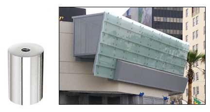 In display or furniture manufacturing, the innovative design achieves maximum exposure and attention. CRL's 1-1/2" Diameter Standoff System provides the user with unlimited design potential for retail store, restaurant or commercial applications. By simply drilling 5/8" (16 mm) holes in glass, plastic or wood panels, and polishing or finishing the edges, a completely different and contemporary look can be achieved.