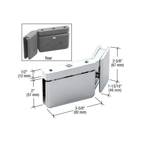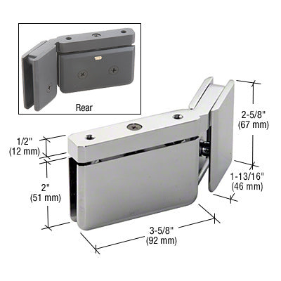 The Prima Hinge, in combination with a U-Clamp, provides a seamless solution for installing a shower door next to a 135-degree fixed panel without a header. This setup can also be implemented at the bottom of the door, or a standard PPH01 Model can be used in conjunction with the door, along with a separate U-Clamp or U-Channel at the bottom of the panel. The hinge is stocked in six popular finishes and is designed for use with 3/8" or 5/16" (10 or 8 mm) thick tempered safety glass.