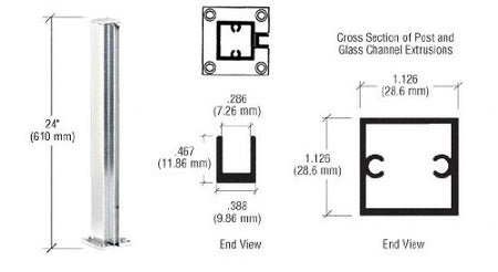 Stock Post Sizes, RED-E to Ship | Standard Heights of 12", 18", and 24" (305, 457, and 610 mm) Available in Four Finishes | Five Standard Configurations End, Center, Corner, 3-Way, and 4-Way | Aluminum Tubing With Full Length Channels for 1/4" (6 mm) Glass | Top Cap and Mounting Base Included