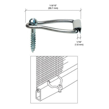 The CRL Spline Bail Latch is specifically designed to be securely hooked onto the screen retainer spline channel of the screen frame to effectively hold the bottom of the screen in the window frame. Installation is straightforward: simply insert the ball head screw on the inner side of the sill and slip the latch hook over the screw. For your convenience, packages containing six latches and screws are readily available, making it suitable for small jobs or retail sales.