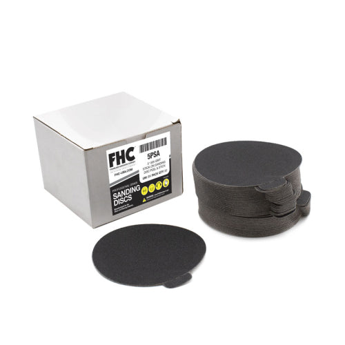 FHC Sanding Discs are available in 5", 6" and 7" diameters and assorted Grits. Water-proof and Durable tear resistant materials backs these sanding discs.