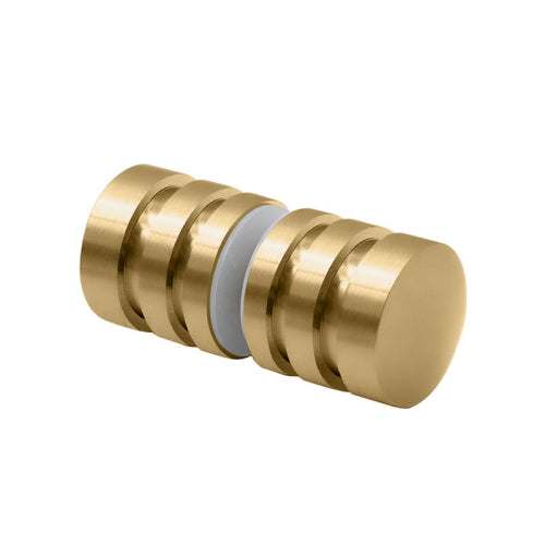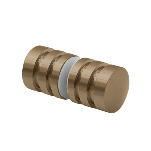 Solid brass FHC Back-To-Back Modern Knobs come in up to 19 beautiful finishes. Knobs measure 1-3/16" (30 mm) in diameter and stand 1-3/16" (30 mm) from the door surface. End cap for Single-Sided Knob stands 1/4" (6 mm) from the door surface.