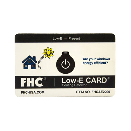 The AE2200 Low-E CARD® is a disposable model that will allow 1,000 tests to be conducted. It will confirm if there is a Low-E coating present on the piece of glass you place it against. The AE2200 will test both sides of the piece of glass from one side. It will not differentiate which side has the coating but it will confirm if a Low-E coating is present. There are no metal contacts to scratch the glass surface. Therefore it is safe to use on all glass, even if the glass is dirty or has a label or other insulating layer on it. After 1,000 tests, simply dispose of the card.