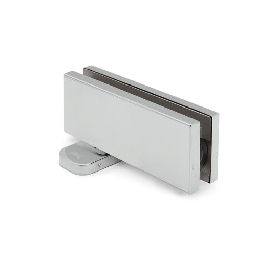 FHC Hydraulic Patch Fittings are medium duty for interior use. There are two adjustment screws to adjust the latching speed and the swing speed. The Hydraulic Patch Fitting is designed for installation without the need for any other floor or overhead closing devices.