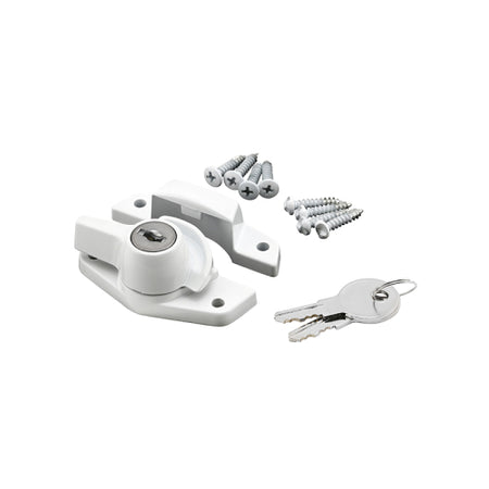 They are constructed of diecast zinc and come in a beautiful, white-painted finish, and only with their keys can the locks be disengaged to allow for opening of windows. These locks feature a universal design that allows them to be mounted on most vertical single-hung and double-hung sliding windows, in addition to those that slide horizontally. Depending on the size of the sash, these locks can be used as singles or pairs, and they can be installed on both left and right horizontal sliding sash. Each set contains two keys, one lock and keeper, and the installation fasteners. Installation of these sash locks is easy and can be done with a simple handheld Phillips head screwdriver. Other design features include a 5/8 inch wide keeper, 2 inch mounting hole centers (distance between each mounting hole measured from center to center of holes), and industry standard finish to match other existing hardware in the home or office.