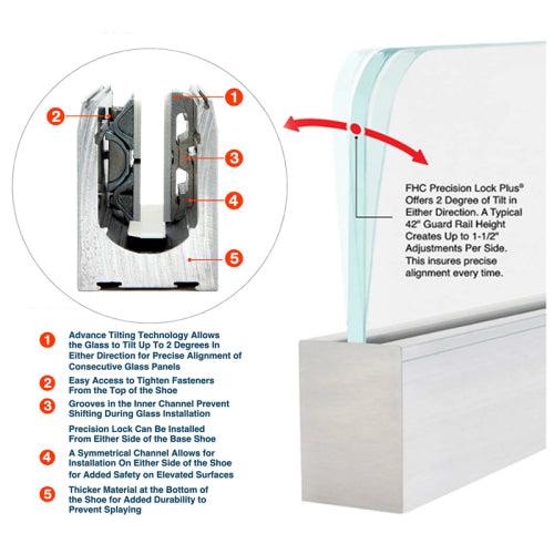 Allows Up to 2 Degrees Glass Panels Adjustment | Patented Design Allows Easy Access For Adjustment | Works with Precision Lock Base Shoe | Install Glass Locks Every 12" - 14" on Center