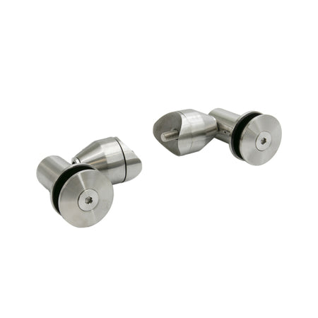 Designed for Railing and Awning Glass Infills | Includes Coped Adapter for Installation on 1.9" Round Post | For 1/2" to 13/16" Thick Glass | 3/8"-16 Allen Screws Included | Sold by the Pair | 90 Degree Coped Adapters Sold Separately