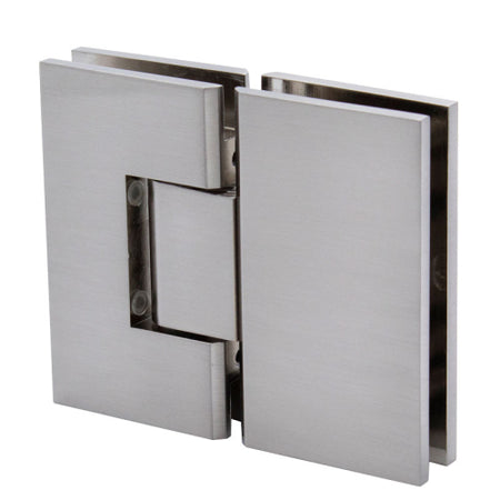 Heavy Duty Square Profile Glass to Glass 180 Deg Hinge | Designed For 3/8"-1/2" (10 mm to 12 mm) Tempered Glass | Heavy Duty Design For Wider and Heavier Doors | Self-Centering within 15 Degrees of Closing Position | Commonly used in Residential Bath and Commercial Hotel Applications | Reversible 5 Deg Pivot Pin For Jobs Requiring a Positive Closing Position