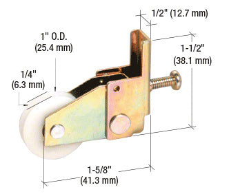 This CRL Sliding Screen Door Bottom Roller has an adjustable 1/2" (12.7 mm) wide steel housing with a 1" (25 mm) nylon ball bearing wheel. This unit is used on Pacesetter doors. Two roller assemblies per package.